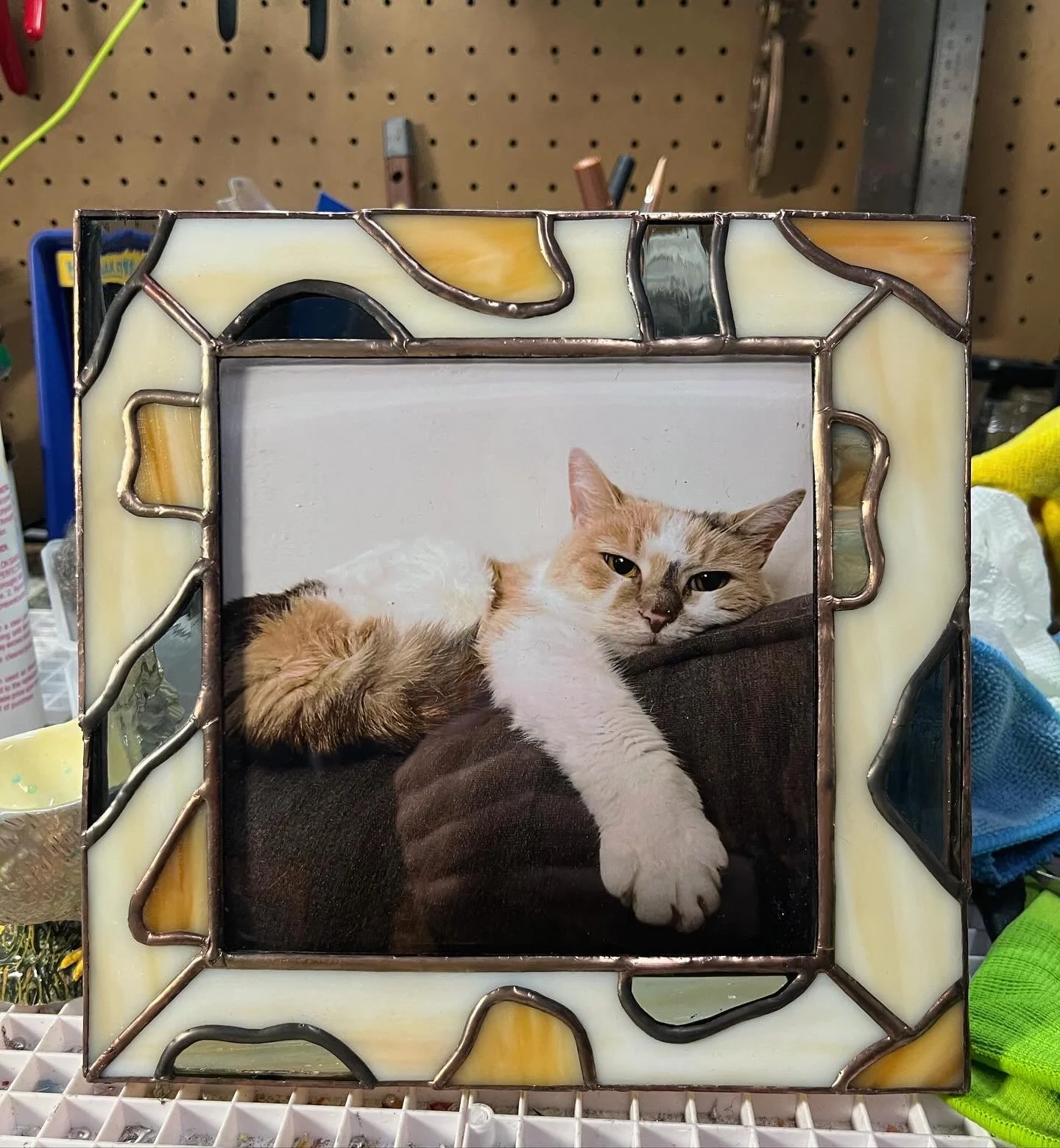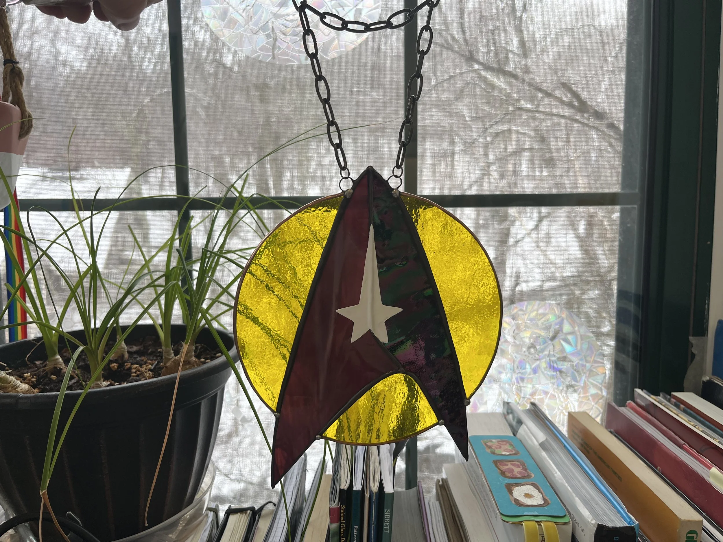 Fern Stidham is a trans artist and maker based out of Western Massachusetts. He specializes in foiled stained glass of all descriptions, with a focus on mirrors and intricate art of unusual subjects. He participates in artist’s markets as well as taking on commission based work. He also makes a selection of other items such as prism effect window clings, prints, felt patches, custom clothing, stickers and more!